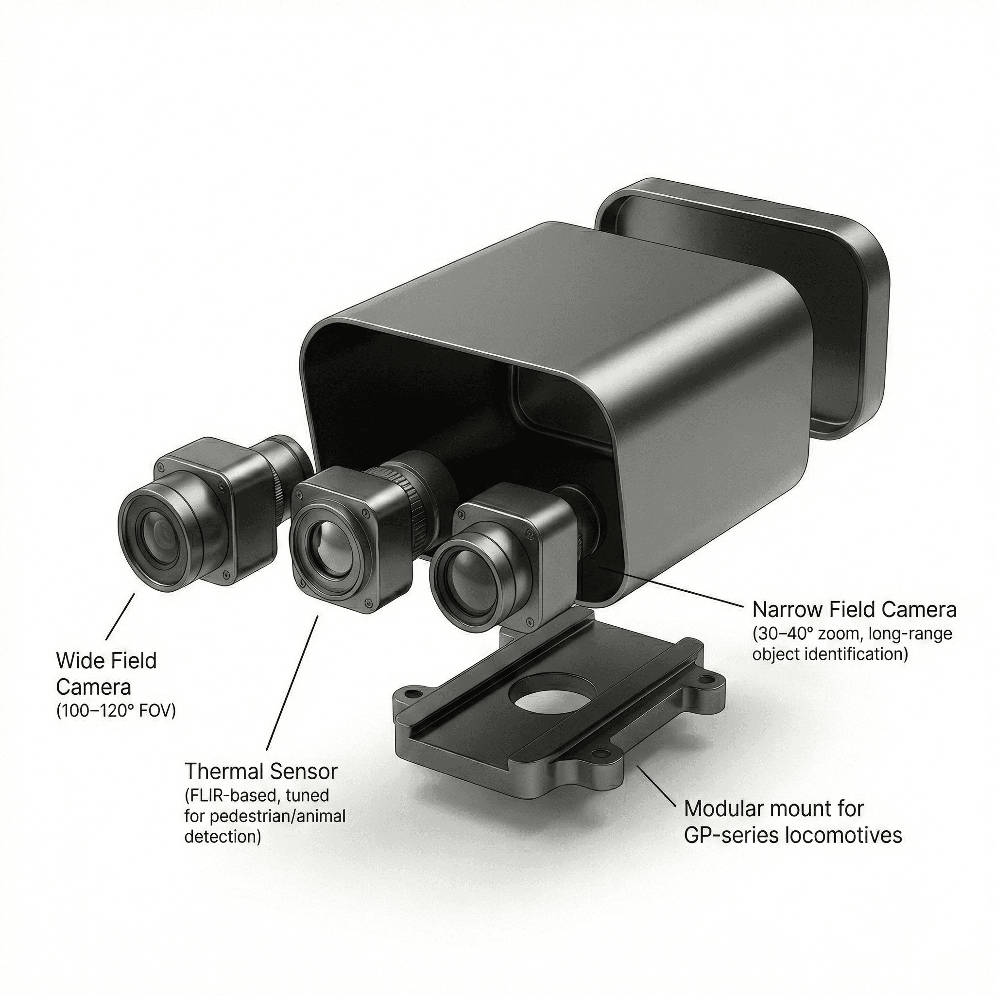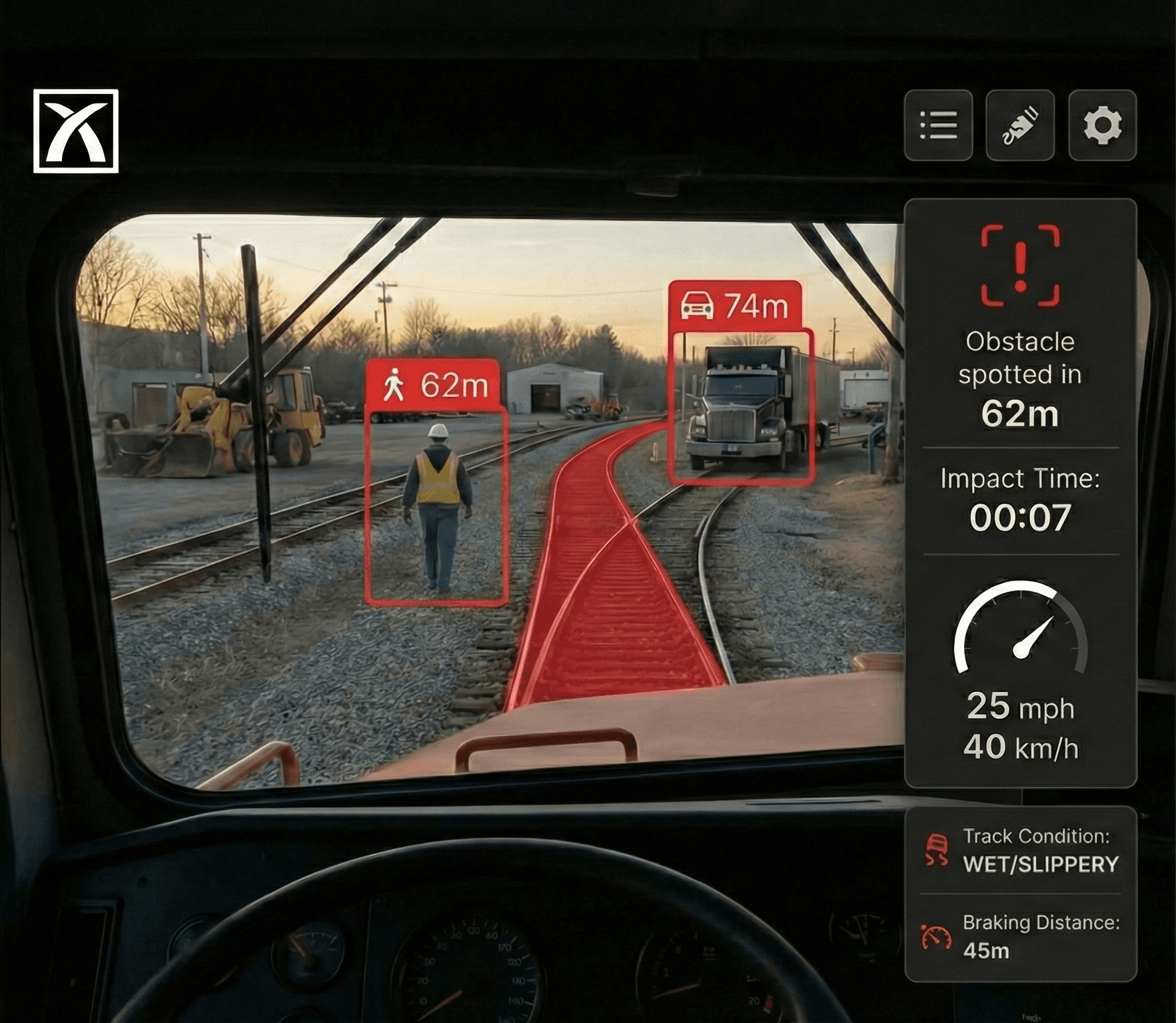 Same Crews. Safer Trains. FRA-Friendly. Bolt-on cameras and sensors for shortline rail. Detects track hazards and obstacles before they become incidents.